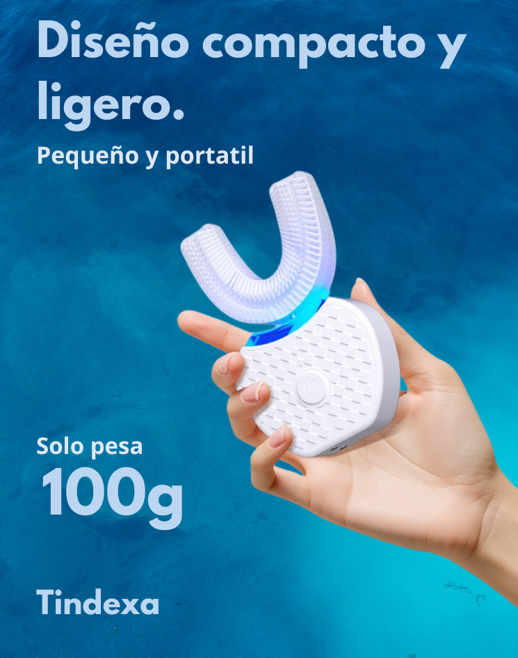 Su diseño ergonómico en forma de U se adapta a tu mandíbula y limpia los dientes por ambos lados a la vez, sin esfuerzo y sin dejar zonas olvidadas.